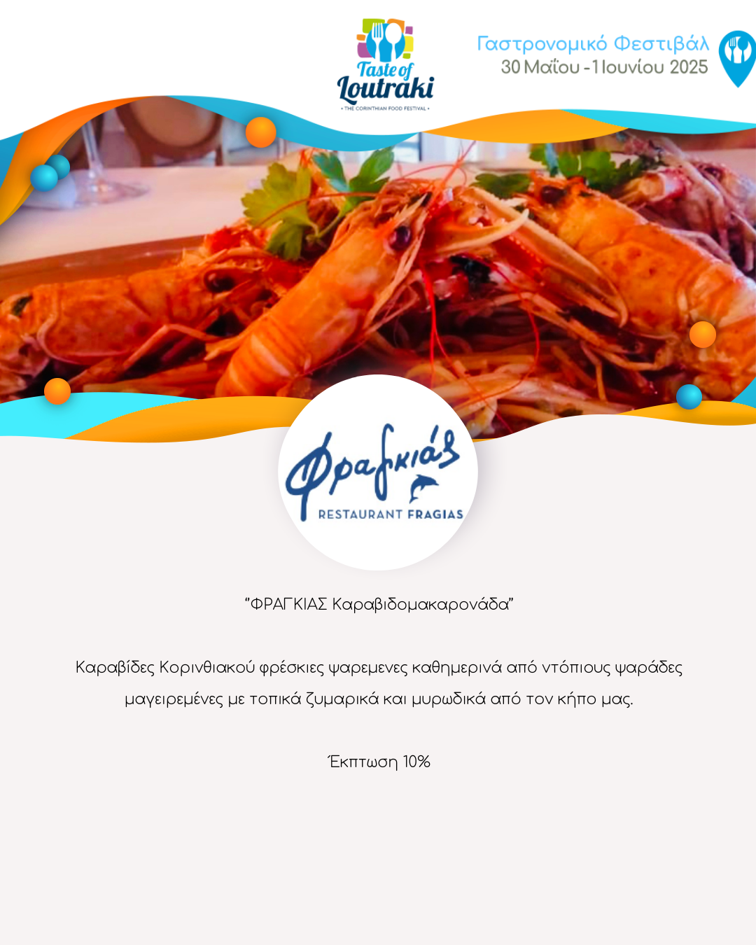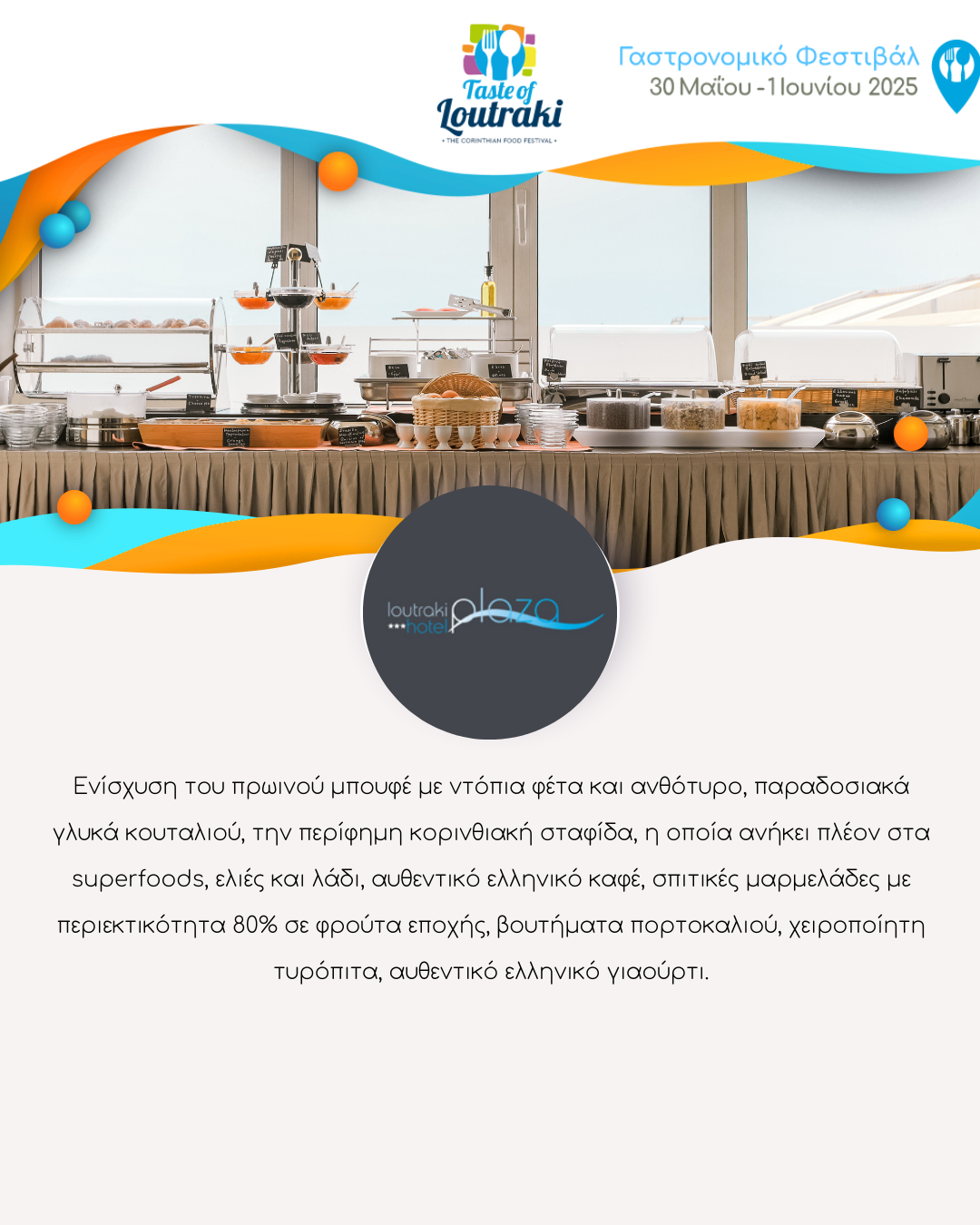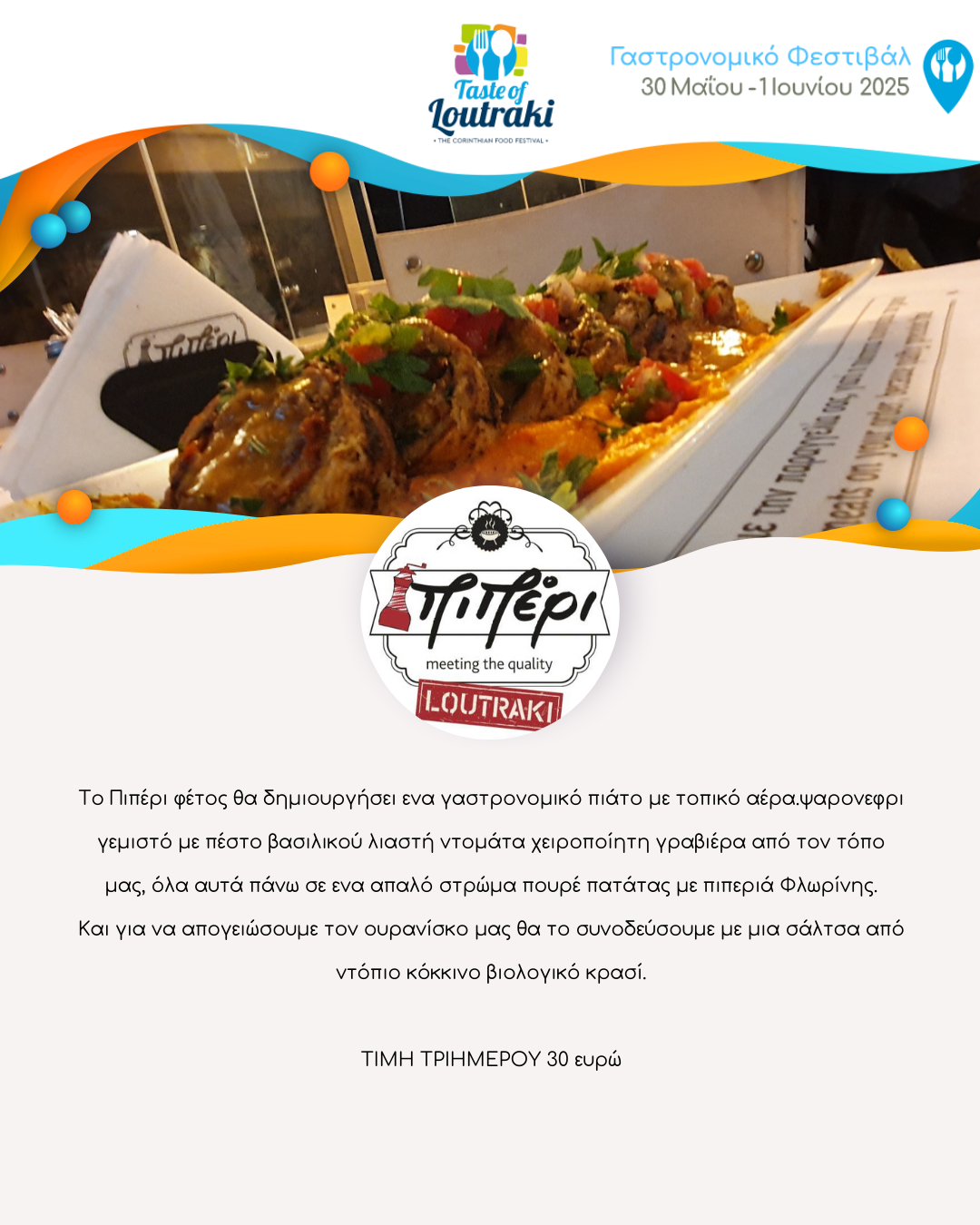 Το 4ο Γαστρονομικό Φεστιβάλ Taste of Loutraki, “The Corinthian Food Festival” δίνει ραντεβού με τους λάτρεις της τοπικής γαστρονομίας το τριήμερο 30 Μαΐου – 1η Ιουνίου.